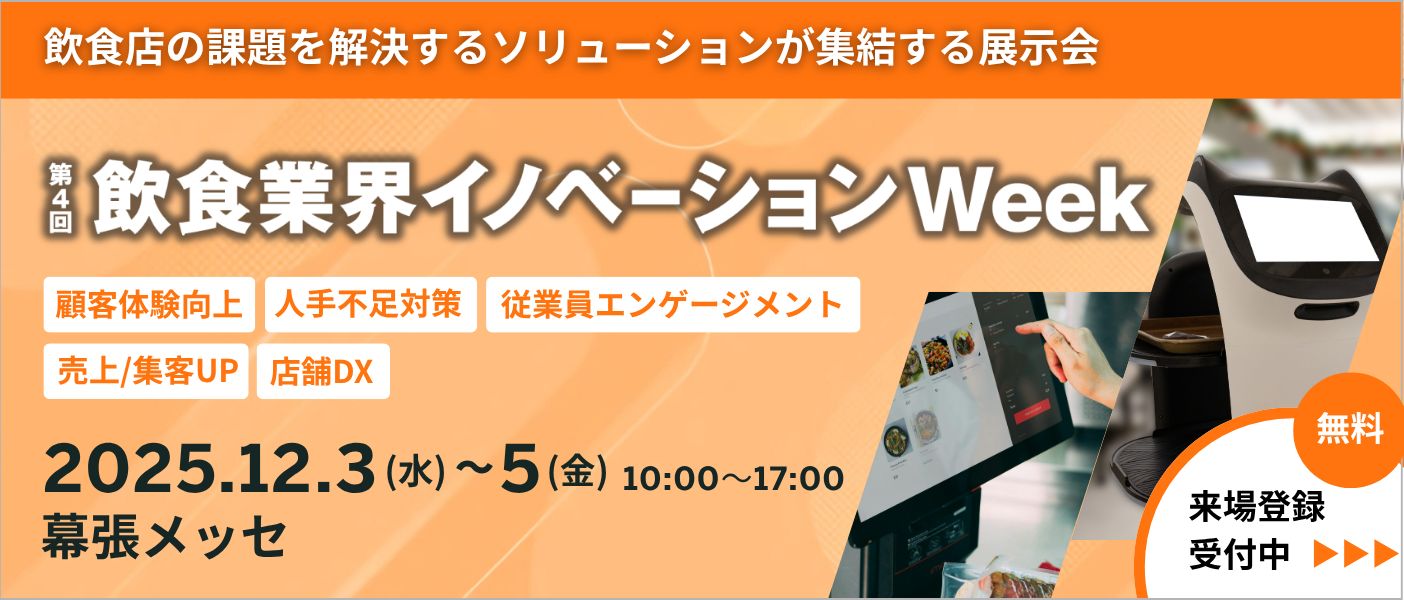 12月3日(水)~5日(金)幕張メッセで、飲食店の悩み・課題が解決できる展示会「第4回 飲食業界イノベーションWeek」が開催