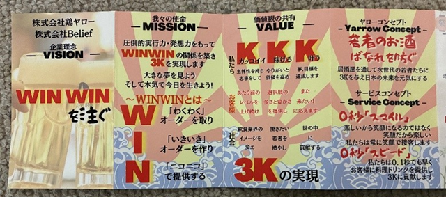 「きつい、汚い、危険」の3Kで店長がカッコ悪いと思われてしまうのは、ウィンウィンじゃないからです。利益が全然取れていなかったり、一部の誰かがめちゃくちゃ取っていたりするからそうなる。安月給で長時間働き、ありがとうとかも言われず、評価もされず、走り続けるうちにだんだん腐っていく…。そんなウィンウィンじゃない状況を変えなければいけない。劇的に変えて、若者が店長に憧れる会社を自分たちは目指すべきだ——。そう考えて理念を作りました。