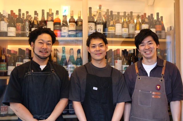 写真左からシェフの加藤修司氏、店長の齊藤隆太氏、スタッフの橋本佳祐氏。店名「otto」はイタリア語で“8”を意味し、日本語の「808(八百屋)」とも掛け合わせて名付けられた
