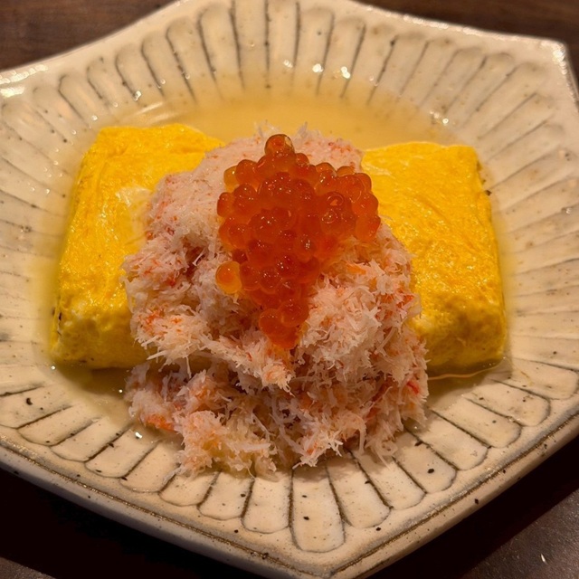 「ずわい蟹といくらのあんかけ出汁巻」(1350円)も自慢の出汁をたっぷり使った品