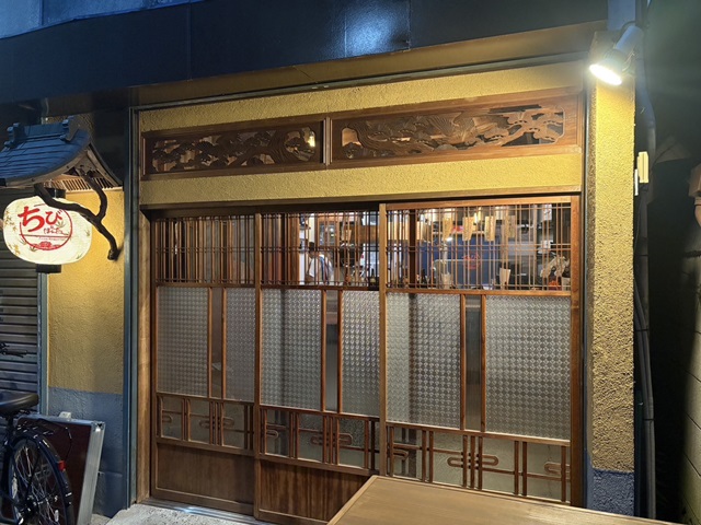 高円寺駅南口から徒歩2分。賑やかな高架下の喧騒を抜けた先、スナックが軒を連ねる少し妖しげな路地に佇む一軒。欄間とすりガラスの引き戸が、風情ある外観をつくり出している