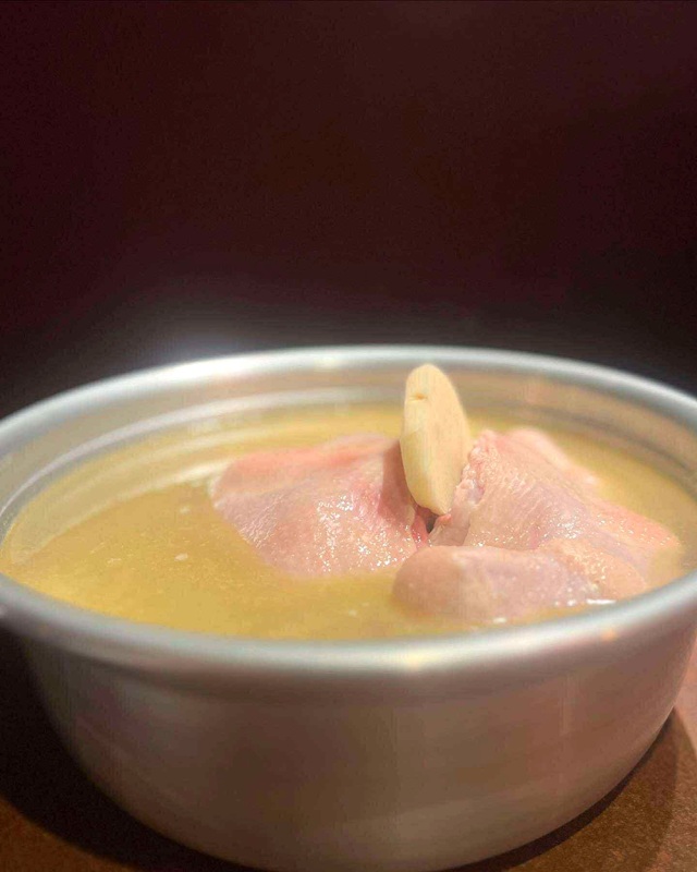 銀座並木通り本店の店づくりは銀座店をほぼ踏襲しているが、今回新たに開発したのが「タッカンマリ」(2人前9000円)だ。青森県産の丸鶏一羽が入り、自家製のタテギ(唐辛子ベースの辛味ダレ)で味わう鍋。「同じ鶏を使った鍋でも、お客様の選択肢を増やし利用動機が広がればと開発しました」と木村氏。韓国の人気タッカンマリ店をベンチマークし、現地の味わいを再現した。