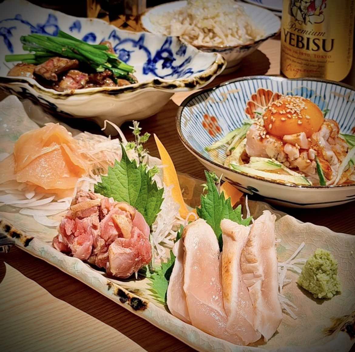 鍋以外にも、鶏刺し(各種880円~)、「名物とり天」(1000円)といった鶏を生かしたものを中心に、冷菜から揚げ物まで一品料理を用意。同店のオススメがひと通り楽しめるコースは8800円~。