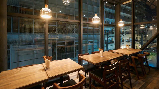 3階の窓際にはテーブル席も並び、複数人利用に向く