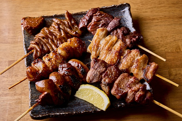 大ぶりのやきとん。串打ちは宮崎の自社食肉処理施設で行っている