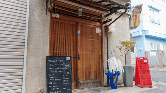 祖師ヶ谷大蔵駅北口から西へ徒歩1分。昭和の面影を残す、年季の入った飲食店がひしめく一角にひっそりと佇んでいる。木製の引き戸が目を引く外観は、まるで実家に帰ってきたような、どこか懐かしく温かな空気をまとっている