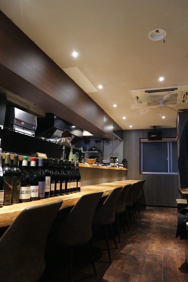 和食居酒屋の居抜き。元の造作を生かしながらも、壁はイメージカラーの黒色に塗り替えて落ち着いた雰囲気に。カウンターのイスはゆったり座れるものに変えた