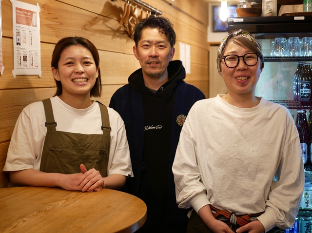 写真右から柴崎路子氏、柴崎洋平氏、女将のがっきーこと新垣 茜氏
