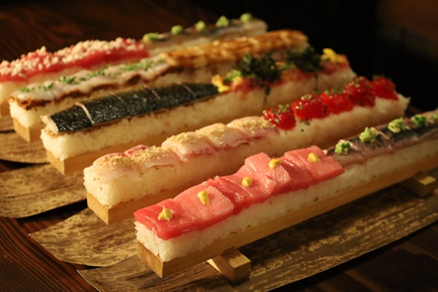 中トロ、筋子、ブリゴマなど常時10種類を揃える「押し寿司」
