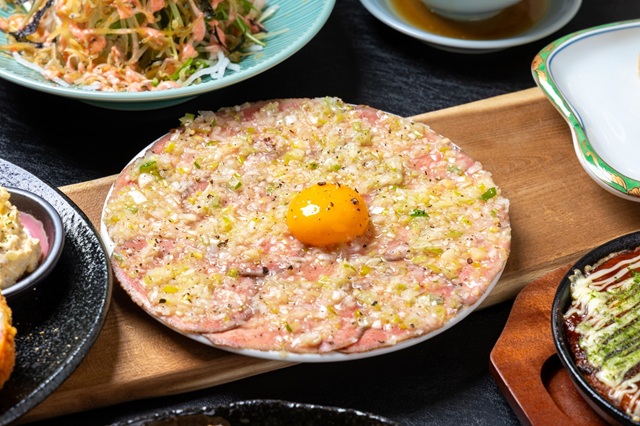 「ミートマン」の人気メニュー「牛タンのネギ塩ユッケ」は低温調理したタンをネギダレで