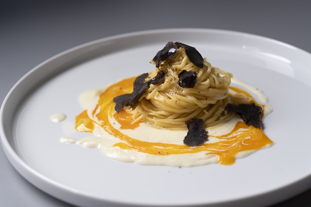 その時々で仕立てが変わるタヤリン。写真は「名物!!タヤリン ピエモンテ風フォンドゥータと黒トリュフ」(2310円)
