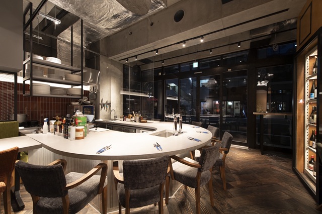 ビビッドなピンクのロゴは、岩崎氏が敬愛するアーティスト「Daft Punk」からインスパイアされたもの。イタリアンレストランには珍しい色使いだ。店内にはデッドストックのスピーカーや、店頭に掲げた「ON AIR」と光るネオンサインなど、遊び心のあるアイテムがスタイリッシュな空間を演出する。それは、食事を楽しむだけでなく、「カルチャーを体験する場」としての世界観を表している。