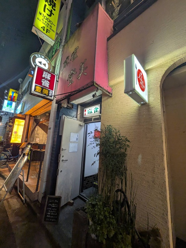 元は雀荘を改装した居酒屋「ジャンソーアタル」が2階で営業する建物の、その上の3階で営業。雀荘時代のオーニングを残した入口から入店する