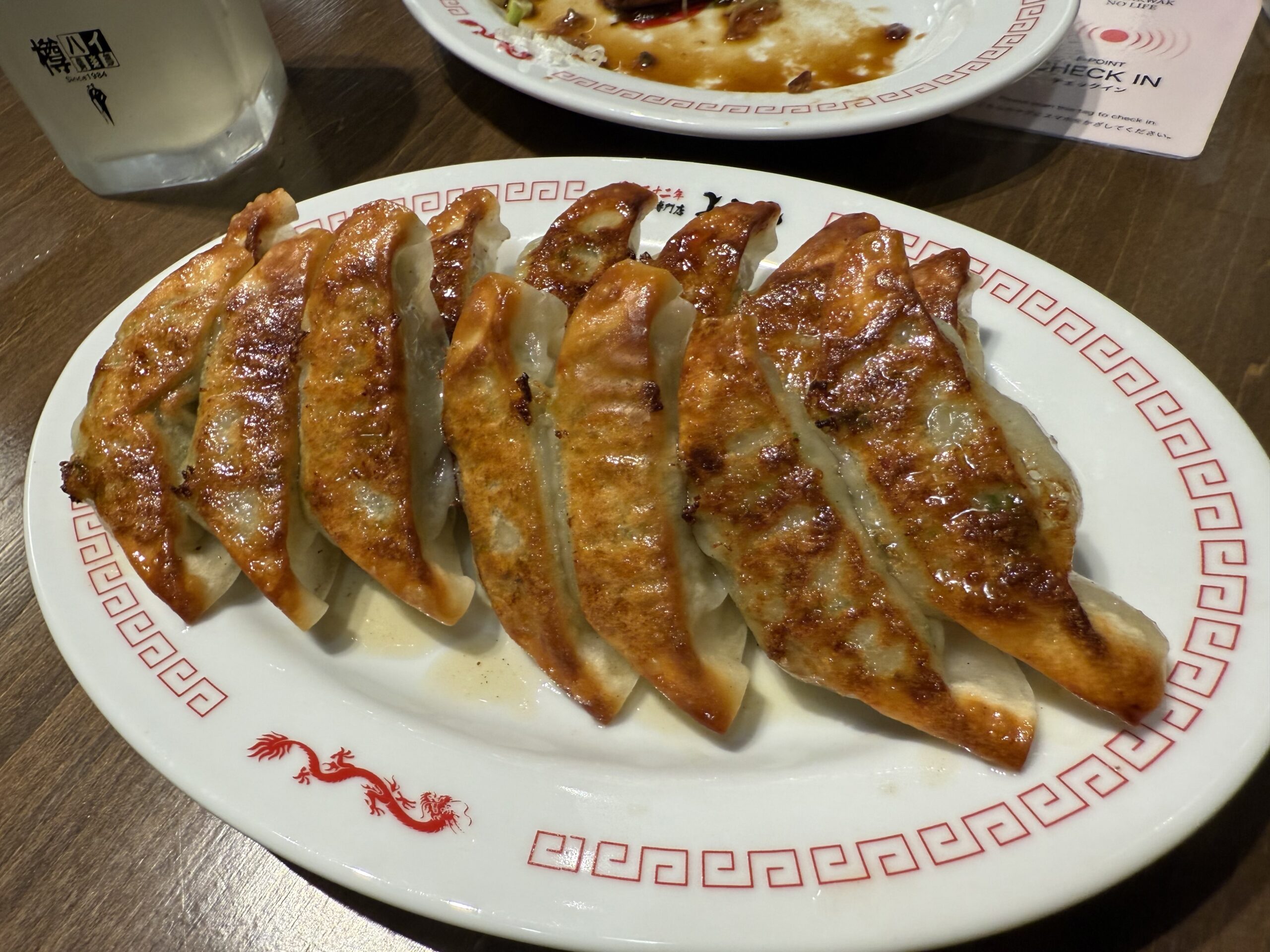 【薄皮でカリッと焼き上げられた食べやすい餃子。ビールやハイボールがぐいぐい進む】