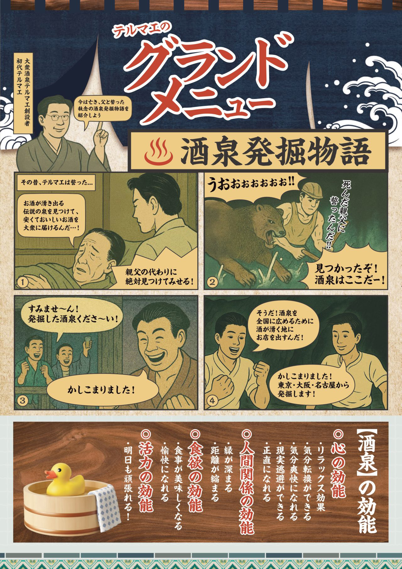 高橋さん:彼(初代テルマエ)はお父さんが死んでしまったときの約束から始まって、今も生き続けてますよっていうライブ感。彼がたまにLINE配信したりとか、酒泉見つけてきたよって月替わりメニューやったりとか、あとは最近力入れているのは、ご当地酒泉。ここでしか飲めないお酒っていうのをどんどん地方に作っていくことにしていて。
