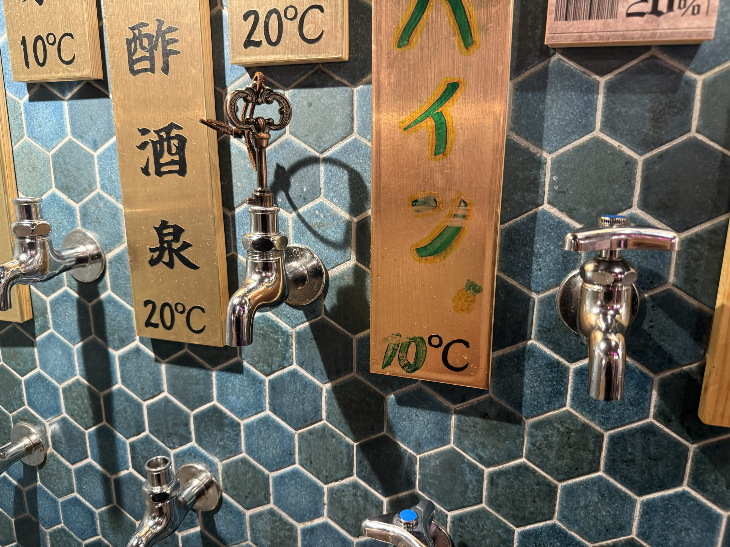 高橋さん:それで、その後テルマエができたのは京浜東北線に門田と乗ってる時に『蛇口からお酒が出てきたら面白いんじゃないか。本物の蛇口から』っていうアイディアがあって。当時ときわ亭も加盟してたんですけど『サーバーじゃなくて、リアルな蛇口をくっつけて飲み放題を出したら面白いんじゃないか』っていう話があって、従来の他の企業さんとはやり方が違う『店の一角に集めて出すっていうことを突き詰めると、面白いことができるんじゃないか』っていうのにストーリー性を入れて出来上がったのが、2021年ですね。電車で話してから1ヶ月後ぐらいにはオープンまで行けたので、そこから300万円ぐらいだったお店が1000万円ぐらい今日も生み続けていってます。
