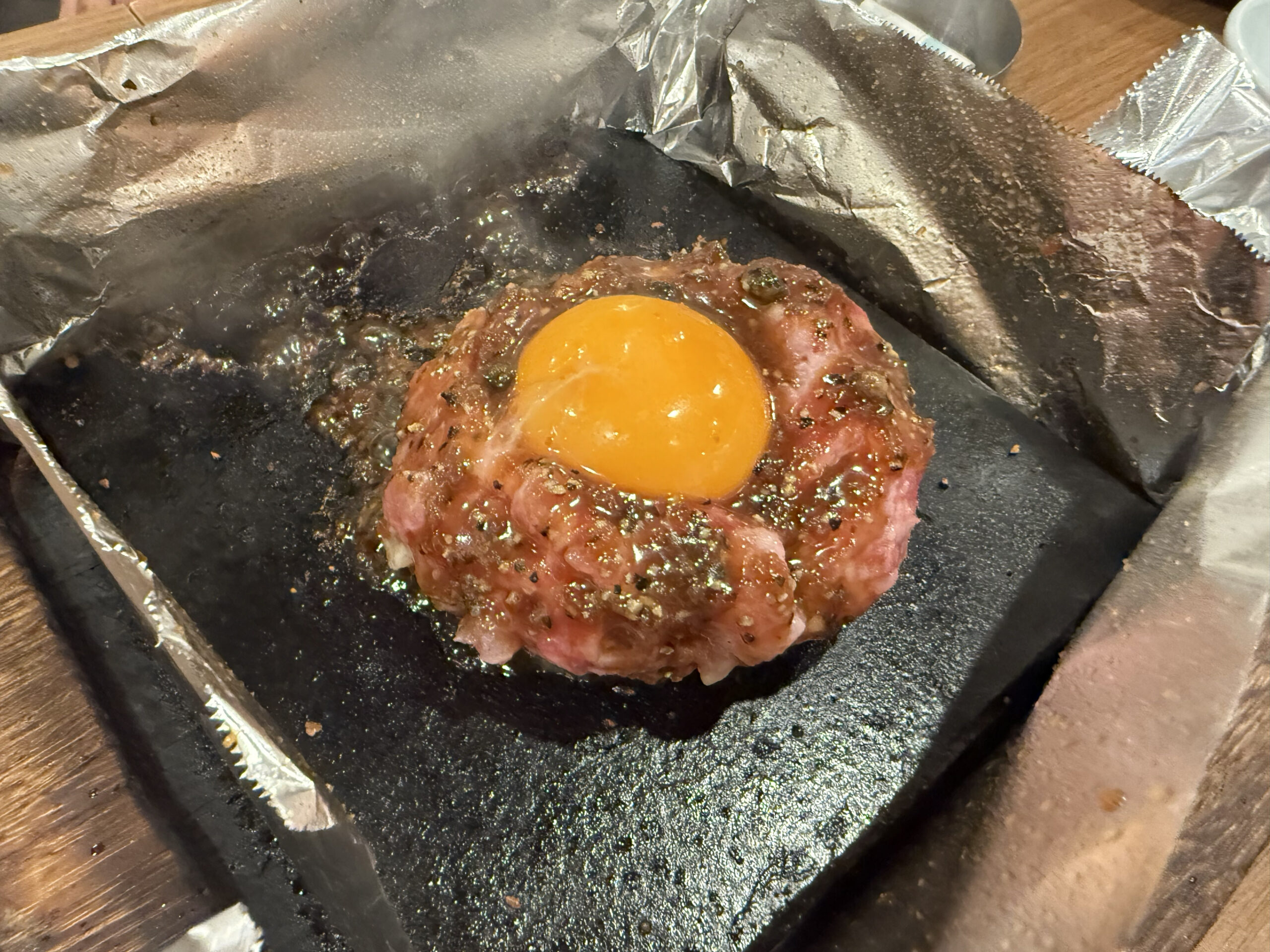 生で食べれるハンバーグを開発しまして。馬肉でできているんですけど、隠し味が色々入っていて原価が安くてうまい状態で、生で食べれるっていう。