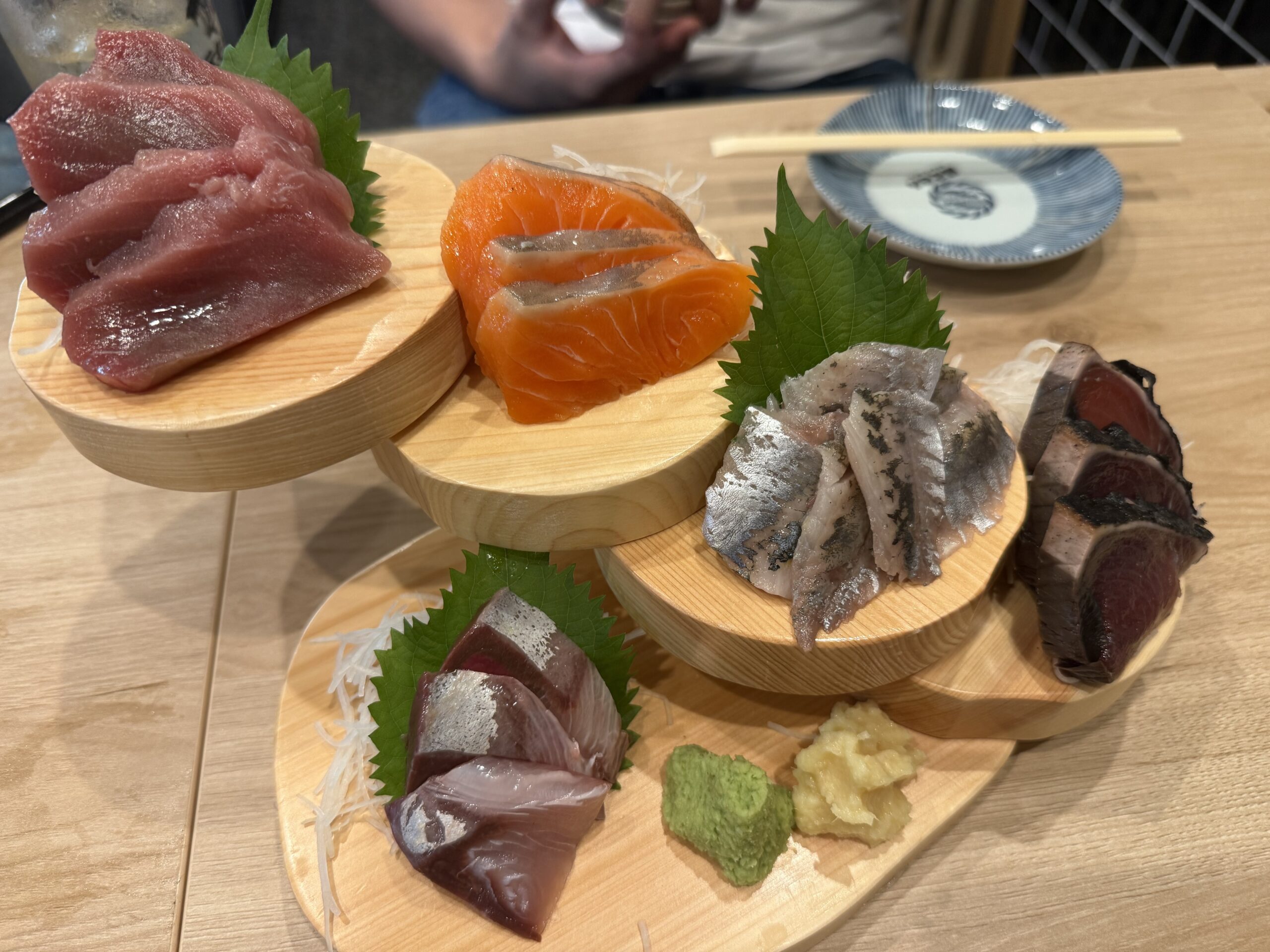 【一人前780円(税別)の「魚えもん刺し盛り(写真は3人盛り)」】