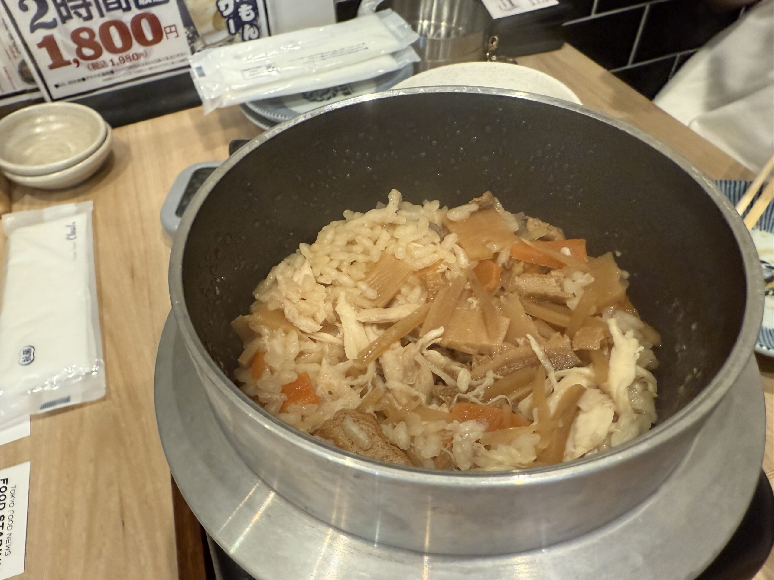 【卓上で炊き上げる「とり釜飯」は、なんと399円(税別)】