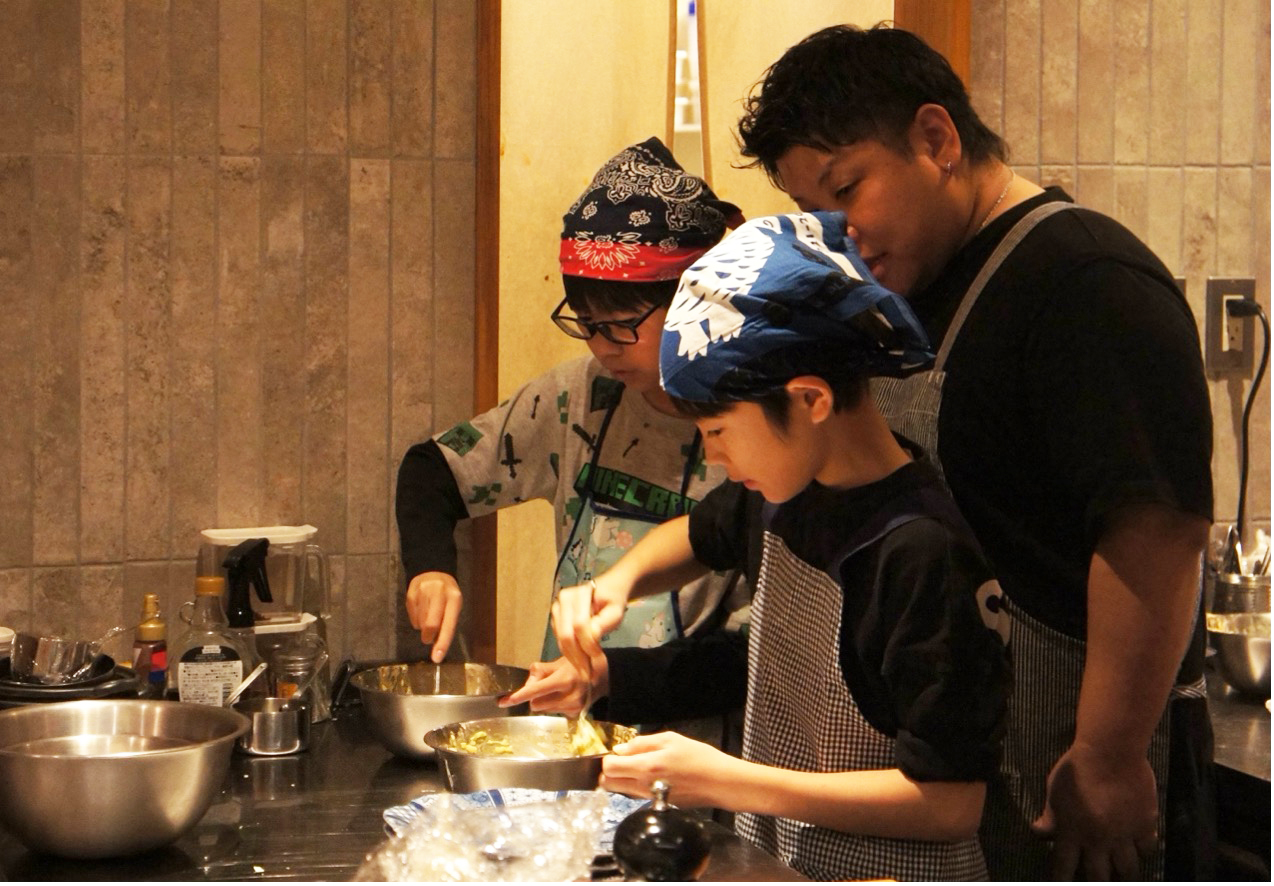 最初は緊張気味な子供達でしたが、料理を一緒に作る事によって自然と笑顔になり自分達が作った料理を親御さんと一緒に食べ、帰る頃には元気いっぱいでまるで別人のようになっていました。子供達の真剣な眼差や初めて出会った方々を自然と笑顔に出来る飲食店の価値を改めて学ばせて頂きました。