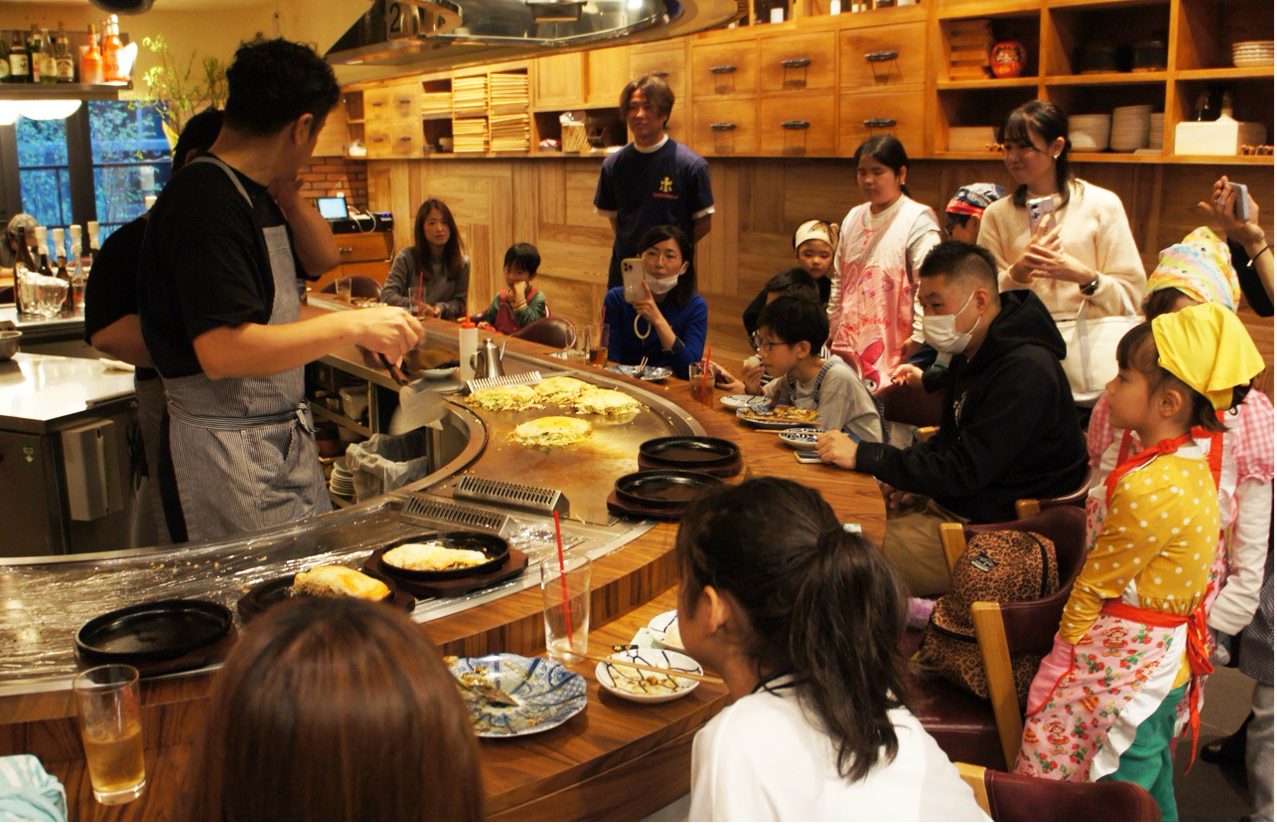 - お好み焼きの具材を自ら混ぜ、タイミングを見極めてひっくり返し焼き上げる体験に加え、職人の解説やクイズを通して、日本の食文化の魅力と高度な技を多角的に実感する機会となった。