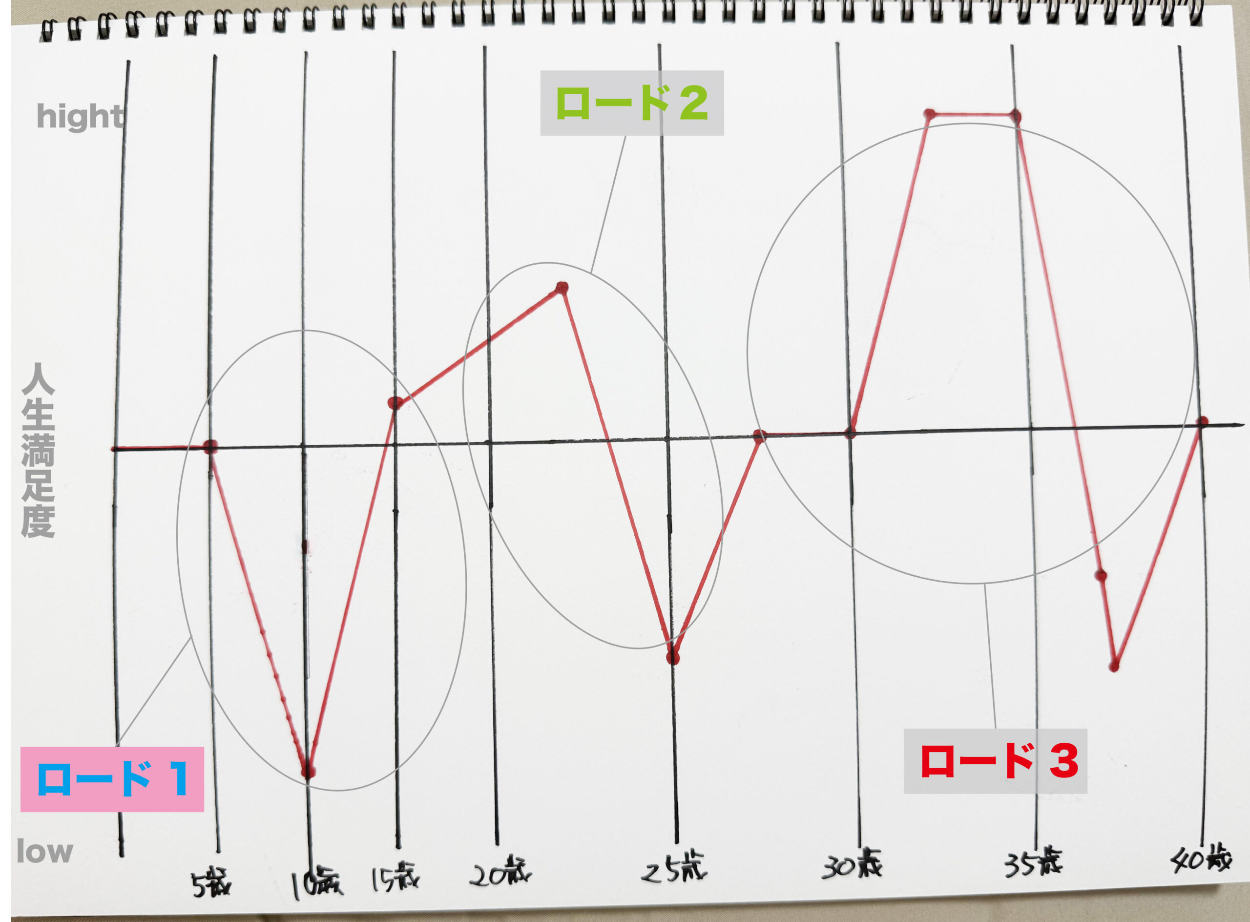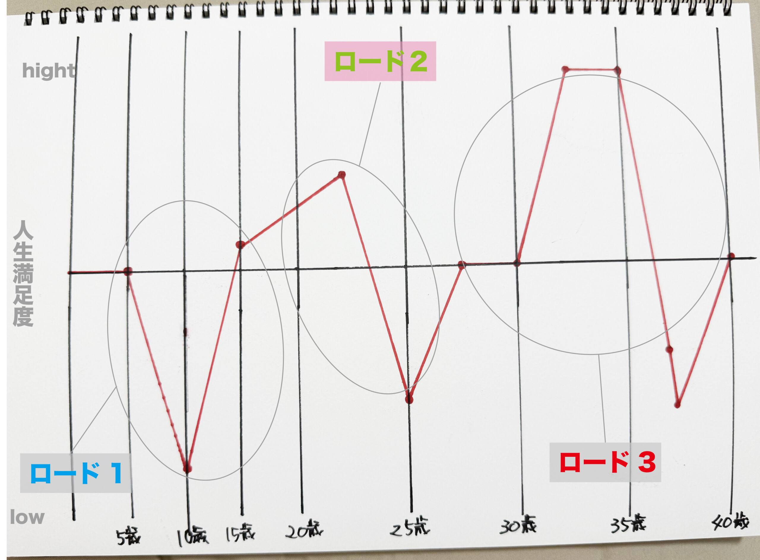 藤田さん:それで10歳でちょっと(グラフが)下がっていっているのが、それがコンプレックスに変わっていった時。ちょっと物心ついてきて、周りはサラリーマンとか、普通に職業があるわけじゃないですか、世の中に色々な職業が。だけどうち、職業=寺じゃないですか。それで周りからは『なんなんそれ』みたいな(笑)。自分自身もクリスマスとか一切なかったので、12月25日のクリスマスより当時住職の親父の誕生日が12月29日なので、そっちの方が重要で。そこからお正月に行くので。周りはクリスマスとかで結構華やかにプレゼントとかもらうじゃないですか、僕ら一切なかったのわけです。それがコンプレックスになって「ちょっとなんか嫌だな」って思っていたのが小学校高学年ぐらいですかね。中学生になって、それが逆にネタにもなるし、肯定したというか。寺生まれってやっぱりちょっとずつ変なんですよ。その時は周りにお寺の子とかいなかったので「うち、お金持っているな」と思ったんですけど、後々仏教の大学に行って思うのは「うちなんて下の下だったな」って思うんですよ(笑)。