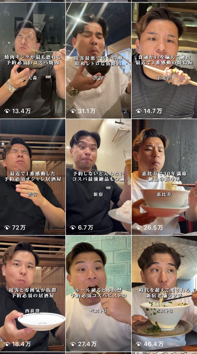 金子氏:僕がおすすめするのは、再生数が安定していて、集客を目的とした拡散性のあるインフルエンサーです。グルメを専門に投稿されている方は数多くいますが、その中でもフォロワー数や影響力で区分けするとしたら、中堅からトップクラスの人に依頼するのがいいでしょう。具体的には、5万人以上のミドルインフルエンサーから30万人以上のトップインフルエンサー。1000人単位のマイクロインフルエンサーですと予算は軽く済みますが、投稿が拡散されて集客に繋がるかどうかは運次第になってしまいます。大切な予算を割くのであれば運任せにせず、集客に繋がるインフルエンサーに依頼しないと無駄になる可能性が高いです。