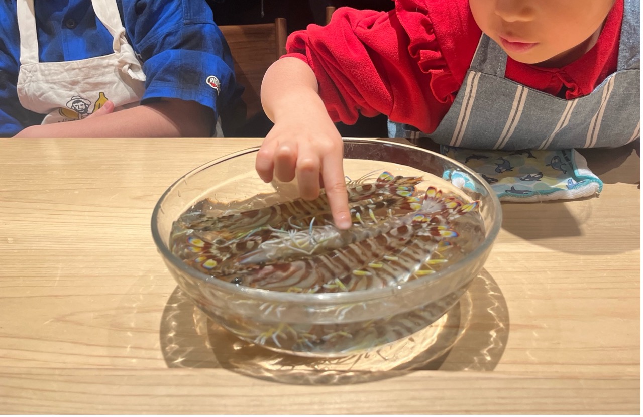- 目をキラキラさせてお寿司体験の話をする姿を見て、食育以外にもジョーさんや怪物さんとお話をする機会も、こどもの視野や世界が広がったように感じました。